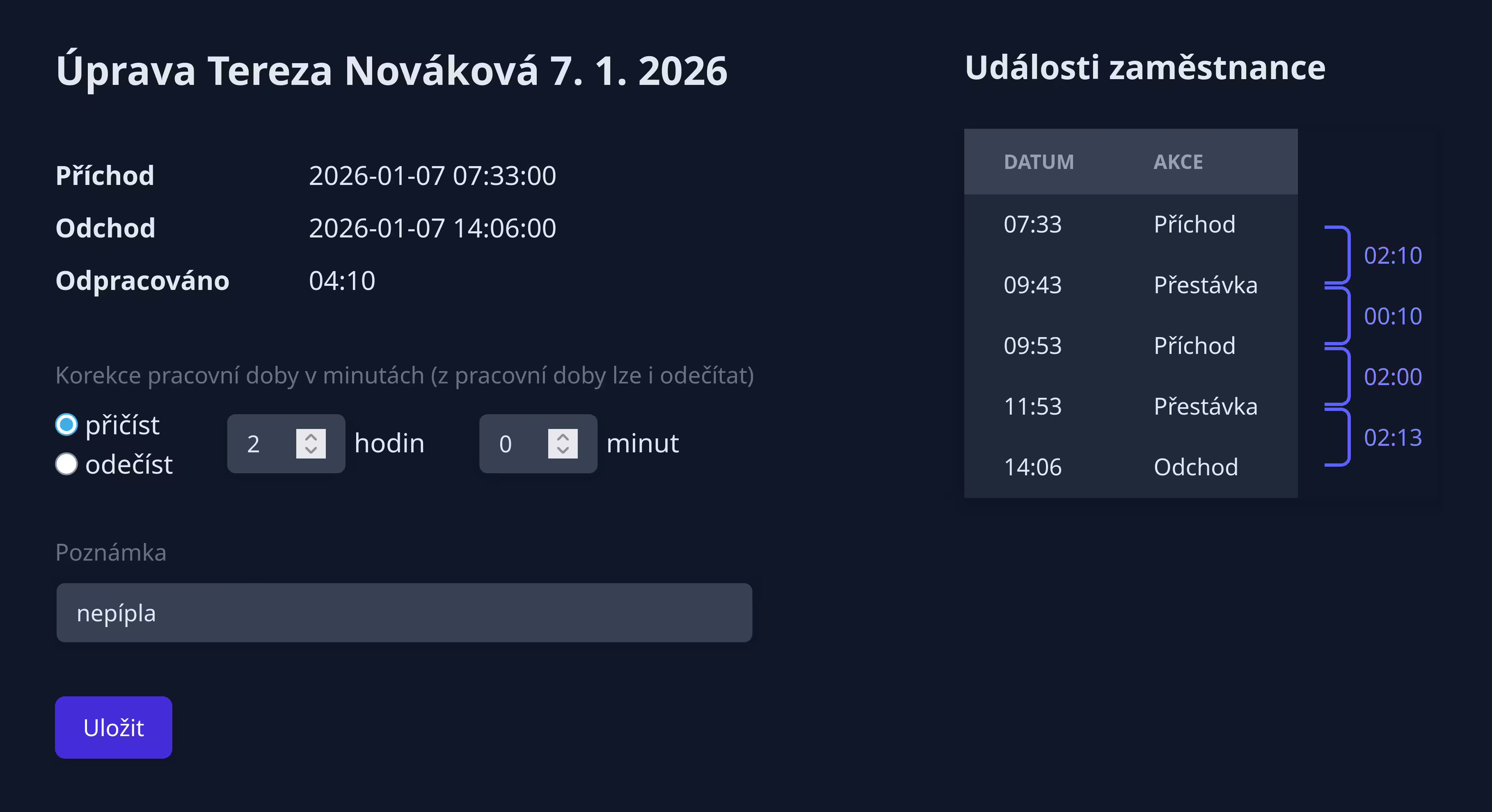 Úprava odpracovaných hodin